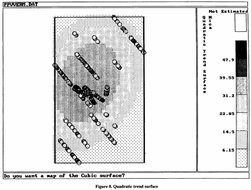 In August 1994, after a computer disk containing the sample data had been received from RTZ head office, a brief statistical analysis was made and, in September 1994, a visit was paid to the mine. Work started immediately after that at the Mining Engineering Department with a proprietary software package called Geostokos Toolkit, which had been developed by Dr Isobel Clark of the Department. This toolkit package is interactive and well-documented, has the anisotropic option built in, and outputs prediction and standard error values for easy contouring.